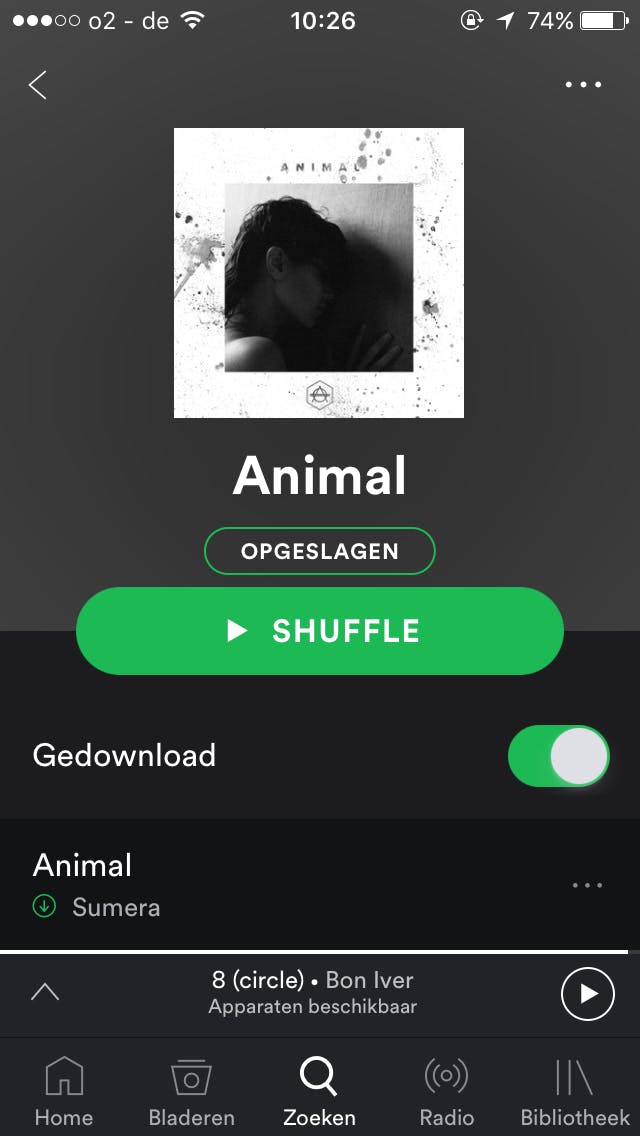 Heb je nu een leuk album gevonden dat je voor offline gebruik wilt opslaan, zet dan onder het artwork de schuif achter Gedownload aan.