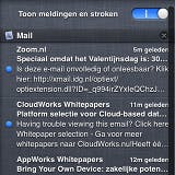 OS X toont sinds de introductie van Mountain Lion meldingen op de Mac automatisch in de rechterbovenhoek van het scherm. Met behulp van een knop aan de rechterzijde van de menubalk open je het berichtencentrum in zijn geheel. Je krijgt hierdoor een overzicht te zien van alle meldingen die op de Mac zijn verzameld. Verschillende programma’s hebben dingen aan je te melden. Berichtencentrum sorteert de berichten daarom per app, waardoor je deze snel kunt terugvinden.