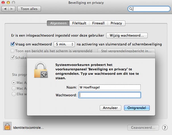Je kunt de instellingen van Gatekeeper pas wijzigen nadat je je wachtwoord hebt ingevoerd