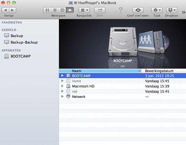 De map 'Gebruikers' is te vinden op de harde schijf die standaard 'Macintosh HD' heet