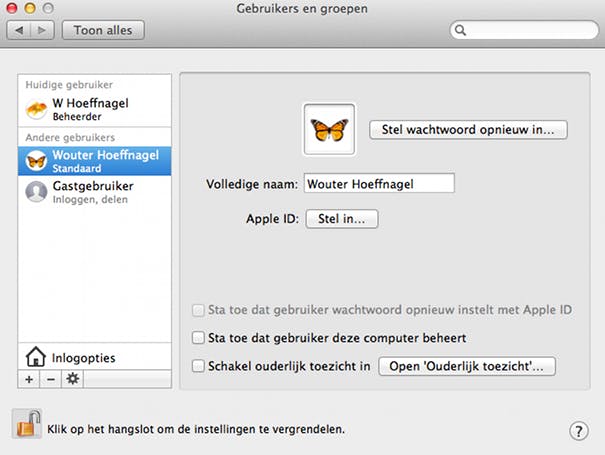Het is alleen mogelijk instellingen van andere gebruikers te wijzigen als jij de beheerder bent van de Mac. Als beheerder kan je allerlei gegevens wijzigen via het menu Gebruikers en groepen in de Systeemvoorkeuren. Denk hierbij aan de volledige naam van de gebruiker en het Apple ID die aan het account is gekoppeld. Ook is het mogelijk een gebruiker beheerdersrechten te geven of juist te ontnemen. Het is echter niet mogelijk de gebruikersnaam zelf te wijzigen.