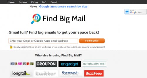 Een handige dienst: Find Big Mail zoekt de allergrootste mails en hangt er een label aan.