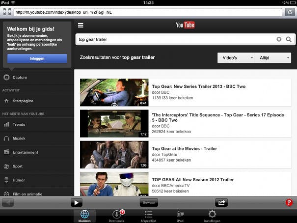 Is de app geïnstalleerd? Open dan de app door op het icoon te klikken. De app opent standaard in het tabblad Bladeren, waarin YouTube wordt vertoond. Je kunt direct aan de slag met het zoeken van een leuke video die je wilt opslaan. Blader hierdoor simpelweg door de verschillende overzichten en categorieën die op YouTube te vinden zijn of maak gebruik van de zoekmachine.