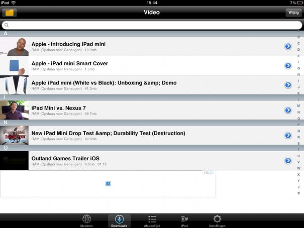Speel video’s af via het tabblad ‘Downloads’