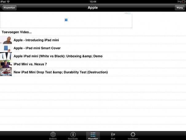 Heb je meerdere video's gedownload je in achter elkaar wilt bekijken? Maak dan gebruik van een afspeellijst. Open het tabblad Afspeellijst en druk op de knop Toevoegen afspeellijst. Geef de afspeellijst een naam en druk op Ok. Klik vervolgens op de knop Toevoegen video en selecteer de video's die je aan de afspeellijst wilt toevoegen. Klik op Gereed in de rechterbovenhoek om je keuze te bevestigen.