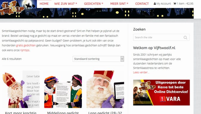 De Rijmpiet heeft misschien wel de allergrootste database aan gratis sinterklaasgedichten op internet. Er zijn gedichten op basis van cadeaus, op basis van personen, maar ook algemene gedichten die bijna voor elke situatie kunnen. En het mooiste is, tijdens de sinterklaasperiode komen er elke dag gedichten bij. Als je hier je gedicht niet vindt, vind je het nergens.