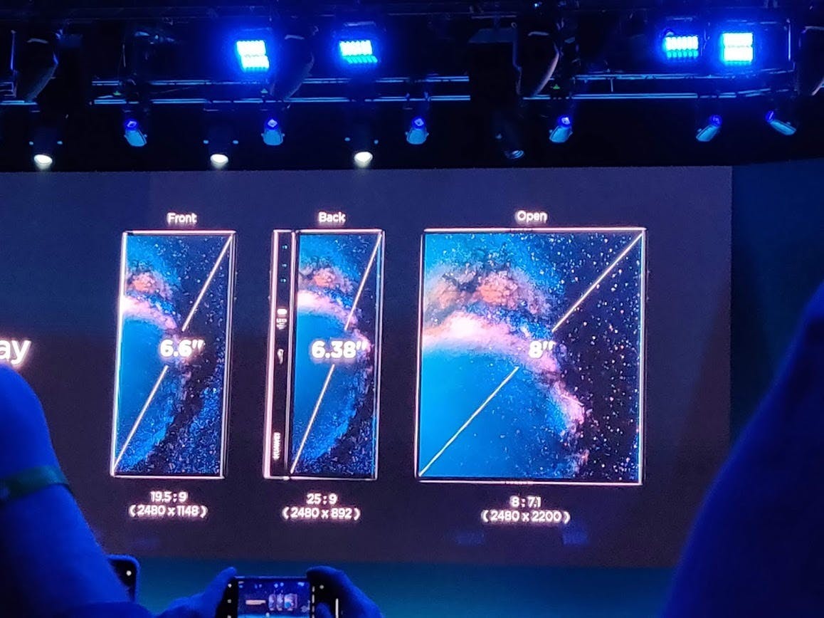 Samsung presenteerde vlak voor het MWC de Galaxy Fold, die in april verschijnt voor bijna tweeduizend dollar. Het apparaat heeft een 4,6 inch scherm voorop dat uitgeklapt een 7,3 inch tabletscherm wordt.