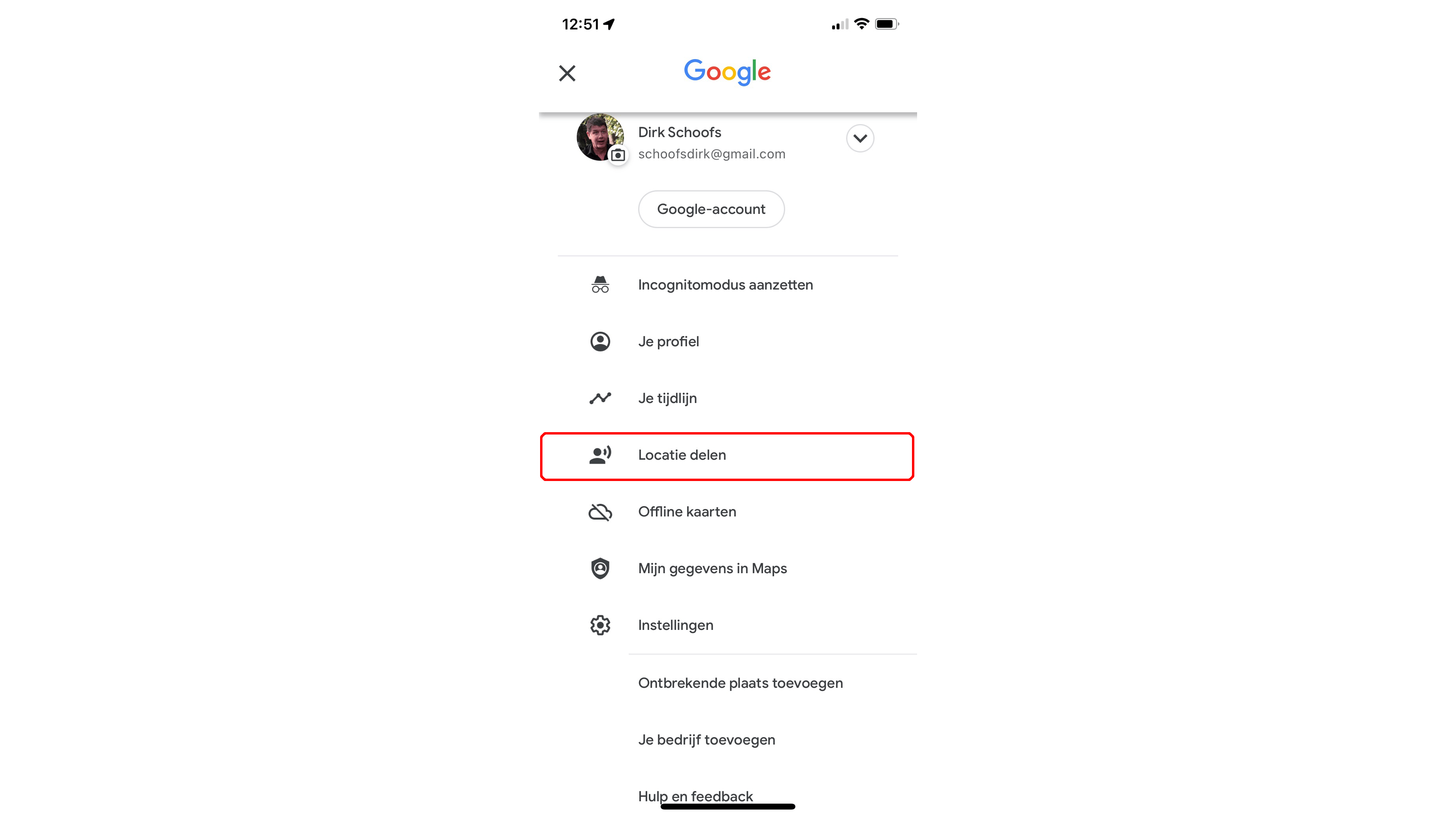 Delen via Google Maps