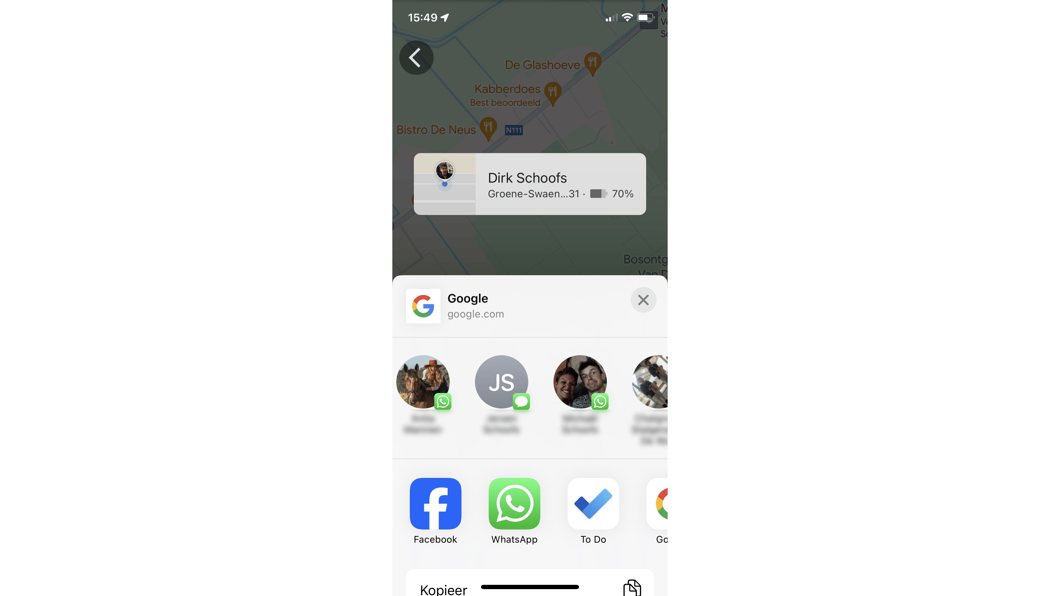 Vanuit WhatsApp kun je ook locaties via Google Maps delen.