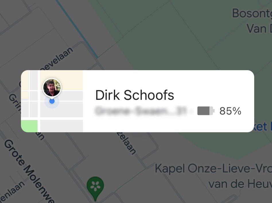 Wat verder belangrijk is om te beseffen, is dat degene met wie je je locatie deelt, ook details ziet die verder gaan dan de plek waar je bent. Diegene ziet ook je naam, je foto, hoe vol je batterij nog is en je geschatte aankomsttijd.