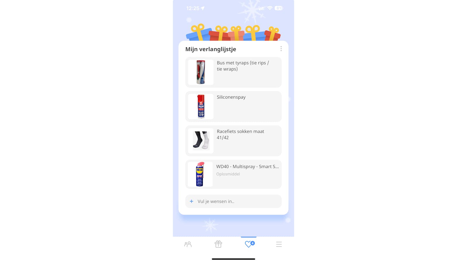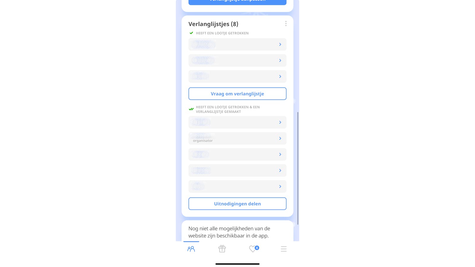 Iedereen die de uitnodiging heeft geaccepteerd, kan een verlanglijstje maken. Inspiratie daarvoor kun je opdoen in de Cadeauzoeker die in de app geïntegreerd is. Je kunt ook meteen aangeven in welke (web)winkel de gever het cadeau kan vinden.