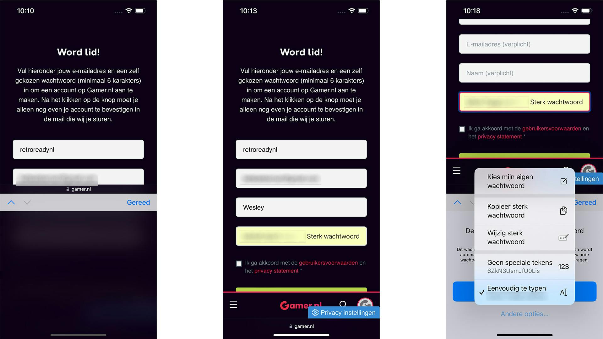 Zo ga je te werk bij het aanmaken van een account waar je een wachtwoord voor nodig hebt:
