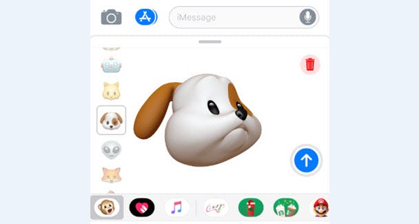 Gelukkig is het dus ook mogelijk om je Animoji’s te versturen via andere kanalen dan iMessage, al is dat wel een beetje omslachtig. Daarbij heb je er een contactpersoon voor nodig die zich hiervoor wil lenen. De truc is namelijk als volgt: wanneer je een Animoji wilt versturen naar iemand op, bijvoorbeeld, Facebook Messenger, dan moet je deze Animoji eerst sturen naar iemand op iMessage. Dit doe je door een gesprek te starten in iMessage, te drukken op het pictogram van de App Storen en vervolgens op het pictogram van Animoji.