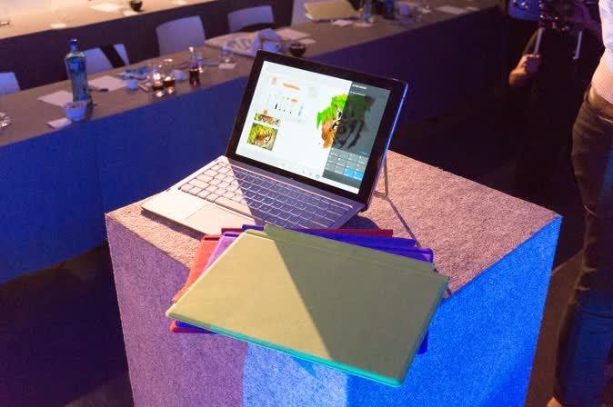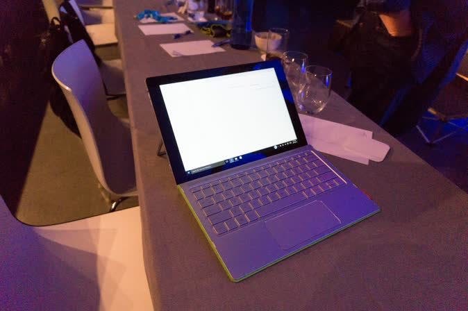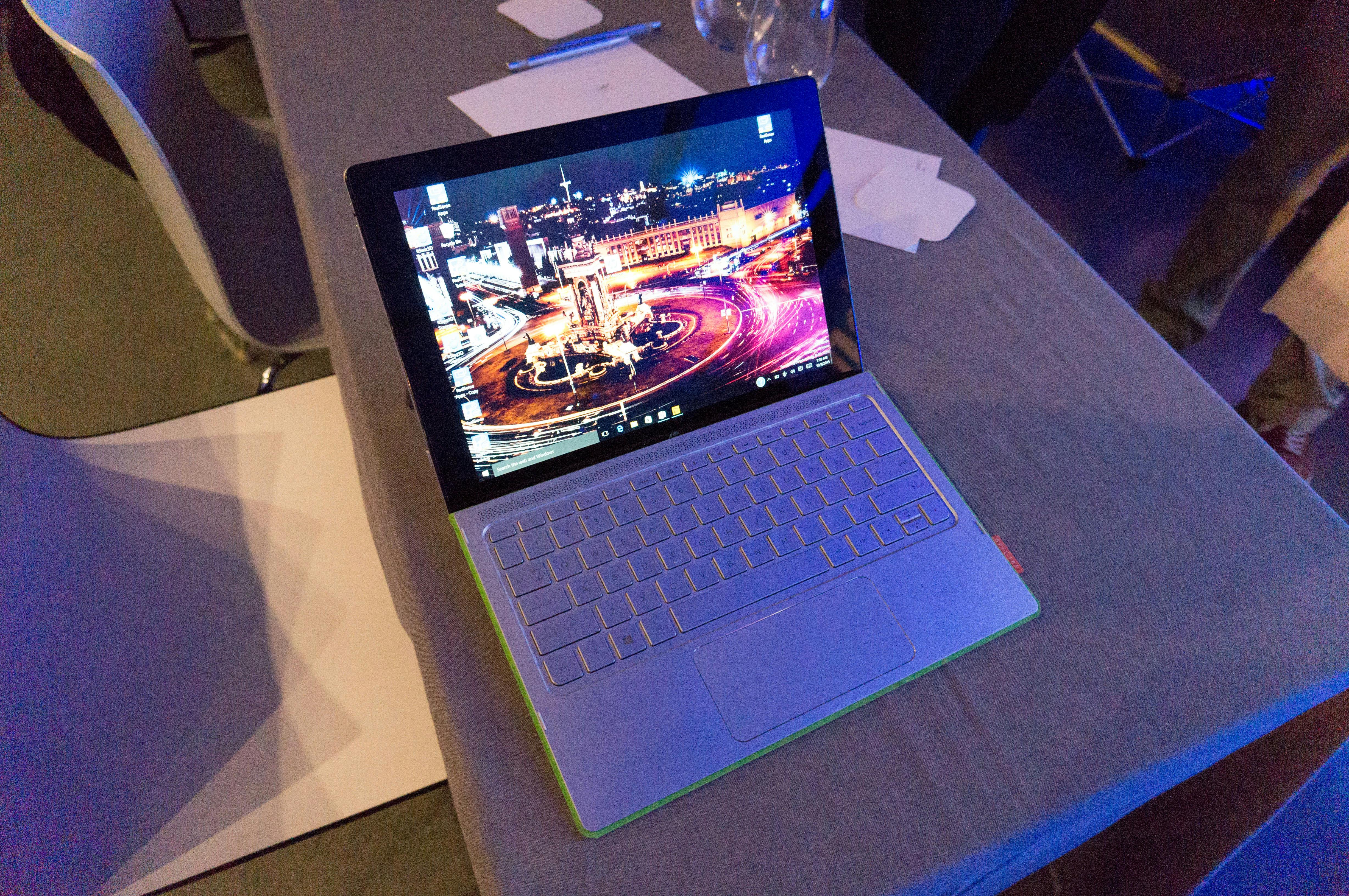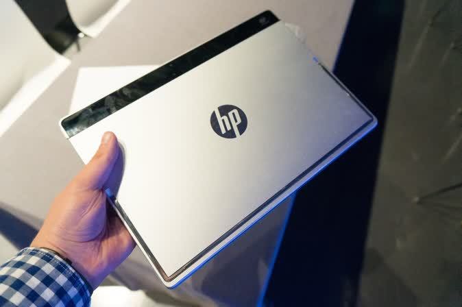 Waar de bovenkant van de toetsenbordcover van aluminium is, is de onderkant (of bovenkant, het is maar hoe je het bekijkt) van stof. Deze stoffen afwerking is verkrijgbaar in verschillende kleuren. Kleur speelt sowieso een grote rol in het portfolio van het nieuwe HP (het gedeelte dat onder andere notebooks, pc's en printers maakt splitst zich binnenkort af van de grootzakelijke tak onder de naam HP Inc.) Het is overigens nog niet helemaal duidelijk in hoeverre je die verschillende kleuren direct kunt kopen.