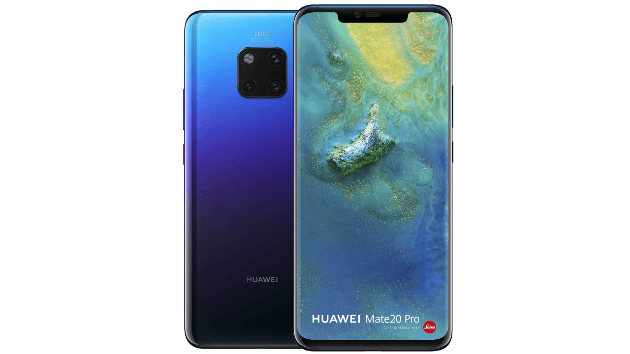 De krachtigste en indrukwekkendste smartphone is natuurlijk de Mate 20 Pro. De smartphone valt op, dankzij zijn enorme QHD oledscherm van 6,4 inch, waarbij een scherminkeping en schermverhouding van 19,5 bij 9 zijn gebruikt om het formaat binnen de perken te houden. Aan de achterkant vallen de drie camera’s op, die in een karakteristiek vierkant blok verwerkt zitten. De driedubbele camera bestaat uit een gewone lens (40 megapixel), een groothoeklens van 20 megapixel en een zoomlens van 8 megapixel.