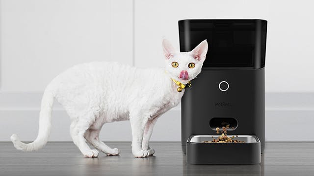 Er bestaan tegenwoordig ook intelligente voederbakken. Dankzij de Petnet SmartFeeder verhongert je kat of hond niet als jij lang van huis bent. Je vult het reservoir volledig, en vervolgens geef je via je smartphone aan wanneer je viervoeter een halve of volledige portie voeding mag krijgen. Is alles op? Dan ontvang jij een notificatie!