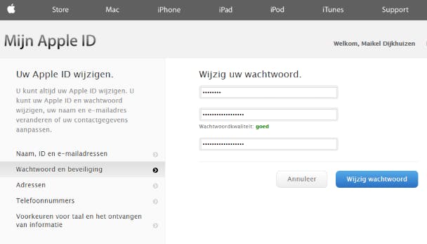 Als je geen iPhone bij de hand hebt, wijzig je het wachtwoord op de website van Apple.