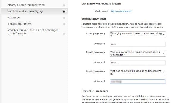 Gebruik geen beveiligingsvragen waarop anderen mogelijk het antwoord weten.