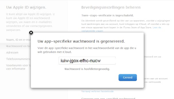 Voor toepassingen die gegevens opslaan in iCloud creëer je een app-specifiek wachtwoord.