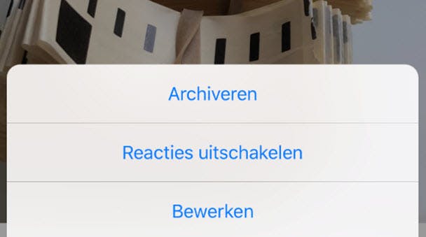 Druk nu rechtsboven op het pictogram met de drie puntjes en daarna op de optie Archiveren bovenin. De foto is nu onmiddellijk onzichtbaar geworden voor al je Instagram-contacten. Een gearchiveerde post kun je overigens ook heel eenvoudig weer zichtbaar maken op je profiel. Het enige dat je daarvoor hoeft te doen is op de foto drukken in je archiefpagina en vervolgens op het pictogram met de drie puntjes drukken. Ditmaal kies je voor In profiel weergeven. De foto is daarna direct weer zichtbaar (inclusief eventuele oorspronkelijke reacties).