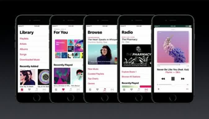 De zesde hoeksteen in iOS 10 is Apple Music. Apple heeft de app een volledige make-over gegeven, zodat je makkelijker toegang hebt tot je favoriete muziek, je recente muziek, je gedownloade muziek, en daarbij een modus krijgt om nieuwe muziek te ontdekken. Leuk, maar eigenlijk niet een eigen categorie waard.