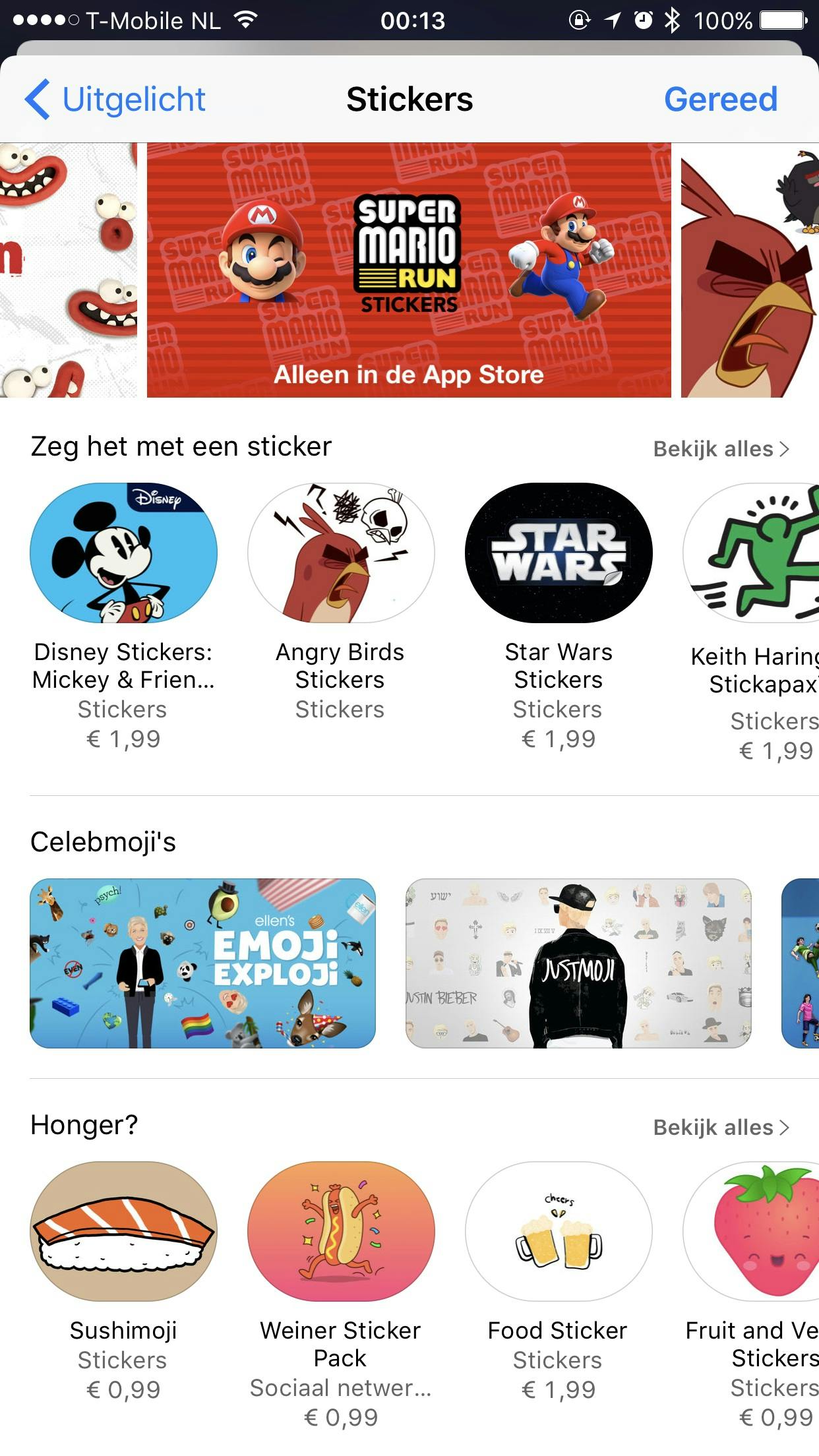iMessage is het onderdeel van iOS 10 dat de grootste metamorfose heeft gekregen. Zoals altijd werd er een beetje lacherig gedaan over de manier waarop Apple de nieuwe functies presenteerde. Deels terecht, maar ik ben ervan overtuigd dat de veranderingen in iMessage de populariteit van de app tot ongekende hoogte zal brengen. Ten eerste zijn er de stickers, die hilarisch zijn. Je kunt je tekstballonnen in iMessage nu opleuken door er stickers op te plakken, iets dat verbazend verslavend werkt, en ook daadwerkelijk meer emotie toevoegt aan de gesprekken. Er zijn gratis stickers, maar wil je, bijvoorbeeld stickers van Disney gebruiken, dan betaal je maar liefst 2 euro (!) voor een paar stickers. Belachelijk duur, maar mensen gaan het ervoor betalen. Fantastisch zijn de nieuwe grafische effecten.
