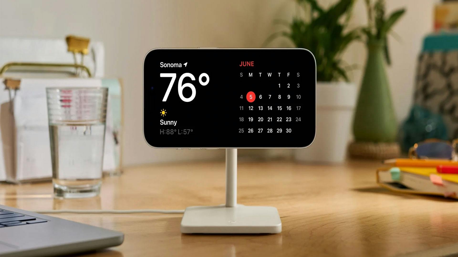 Tot slot kondigt Apple nog een Standby-modus aan. Hiermee verandert je iPhone als het ware in een slimme wekker. Wanneer je je iPhone met iOS 17 oplaadt en horizontaal neerzet, dan verschijnt er een klok in beeld. Maar je ziet ook een kalender, de notificaties en nog veel meer informatie. De modus ondersteuning widgets en is verder helemaal te personaliseren met lettertypen, kleuren en achtergronden. Er is ook ondersteuning voor Live activiteiten, Siri en huisbediening. Heb je dus een smarthome, dan kun je deze modus ook als een soort smart display gebruiken, als je dat wil.
