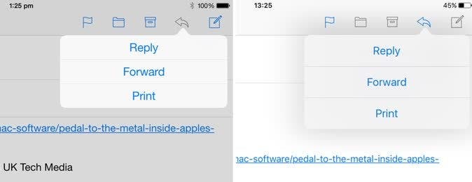 iOS 8 (links) en iOS 7: zeer vergelijkbare visuele ontwerpen.