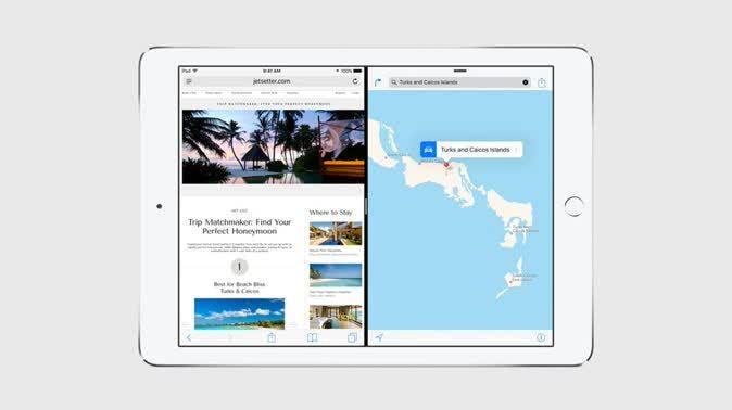 Maar in Slide Over kun je niet met beide apps tegelijk communiceren. Er is echter een geavanceerdere vorm van multitasking in iOS 9, die alleen voor de iPad Air 2 beschikbaar is (en vermoedelijk de iPad Air 3 en iPad Pro). Het heet Split View.