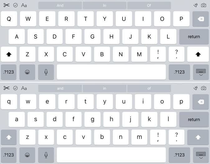 De tweede verandering heeft betrekking op de Shift-toets. Deze voorkomt nu verwarring door het uiterlijk van elke lettertoets te veranderen wanneer Shift is in- of uitgeschakeld. (In eerdere versies klaagden gebruikers erover dat ze niet zeker wisten of Shift aan of uit stond, omdat het gewoon tussen de kleur van de gewone lettertoetsen en de kleur van de speciale toetsen wisselde.)
