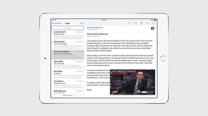 De laatste multitasking functie in iOS 9 is Picture-in-picture Video Viewing en gelukkig is deze compatibel met alle iOS 9 iPads. Het is simpel maar erg aantrekkelijk: als je video's bekijkt (online, met YouTube of een andere video app, of met FaceTime) kun je op de thuisknop drukken om terug te gaan naar het thuisscherm - en de video zal krimpen en blijven draaien. Het is een leuk extraatje en het geeft de iPad een echt desktop gevoel, een apparaat dat je kunt gebruiken om dingen gedaan te krijgen.