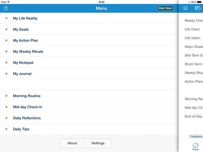 Een slimme app, waar je wel flink wat tijd in moet steken. Aan de hand van een hoop (Engelstalige) vragen, probeert deze app samen met jou uit te dokteren wat je fijn vind aan het leven en wat je langetermijndoelen zijn. Vervolgens wordt daar een kortetermijnvisie van gemaakt, met dagdoelen en voortgangsrapporten. Het is wel jammer dat de app in het Engels is, want dit is véél meer dan een gimmick, hier heb je écht wat aan als je vastzit en je wilt weten hoe je dat moet veranderen.