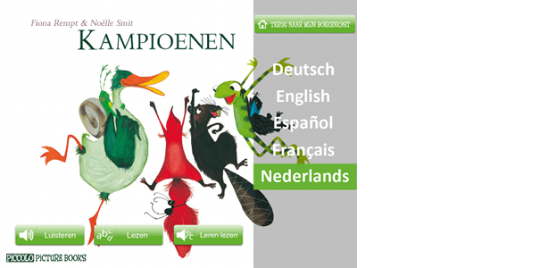 Piccolo Picture Books is een online boekenwinkel voor de iPad die volledig is gericht op kinderen. In de winkel kun je boeken aanschaffen voor kinderen vanaf twee jaar. Kinderen kunnen boeken door de app op laten lezen, zelf lezen (of voorlezen) of 'leren lezen'. Bij deze laatste optie wordt de tekst door de app voorgelezen, terwijl in beeld de uitgesproken tekst blauw kleurt. Kinderen leren hierdoor woorden aan geschreven tekst te koppelen. De boeken bevatten schermvullende afbeeldingen, waarbij met grote letters een stukje van het verhaal staat geschreven. De afbeeldingen zijn groter dan het scherm van de iPad, waardoor je de afbeelding eerst naar rechts schuift voordat je de bladzijde omslaat. De navigatie is hierdoor even wennen. Piccolo Picture Books is gratis te downloaden en bevat een gratis lite-versie van het boek 'De Wedstrijd'. Andere boeken kun je voor 3,99 euro aanschaffen.