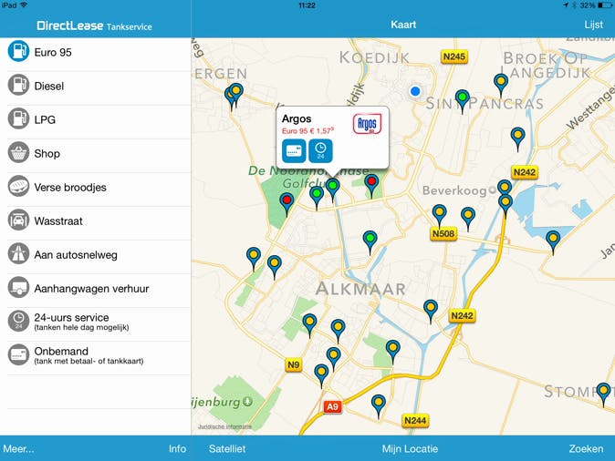 Met een iPad op het dashboard bespaar je een hoop geld. Je zoekt namelijk eenvoudig het goedkoopste tankstation op in de buurt. Download maar eens de app DirectLease TankService. Op een plattegrondje zie je welke tankstations er in de omgeving zijn. Door op een markering te drukken, verschijnen de bijbehorende benzineprijzen in beeld. Overigens is het ook mogelijk om een lijstweergave van de goedkoopste tankstations te openen. Het voordeel van het grote scherm van je iPad is dat de gegevens prima leesbaar zijn vanachter het stuur. Verder hoef je minder veegbewegingen te maken vergeleken met bijvoorbeeld een iPhone. Naast de bezineprijzen laat DirectLease TankService ook zien op welke adressen je verse broodjes koopt en waar je een wasstraat kunt vinden. Als je liever naar een onbemand tankstation rijdt, geef je dat in de app aan.