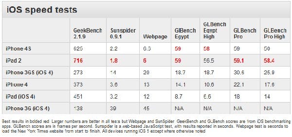 Apple claimt dat de graphics op de iPhone 4S ook een flinke boost hebben gekregen en dat hij maar liefst 7x sneller is dan de iPhone 4 dankzij de A5 processor. Dit is dan wel een best case scenario, maar de tests die ik uitvoerde met de GLBench Pro graphics benchmarking app lieten zien dat er inderdaad verbeterde graphic prestaties zijn. Een 3D test werd gedaan op iPhone 4S en iPhone 4. De test liet zien dat de frame rate ongeveer vijf keer meer is op iPhone 4S dan op iPhone 4.
