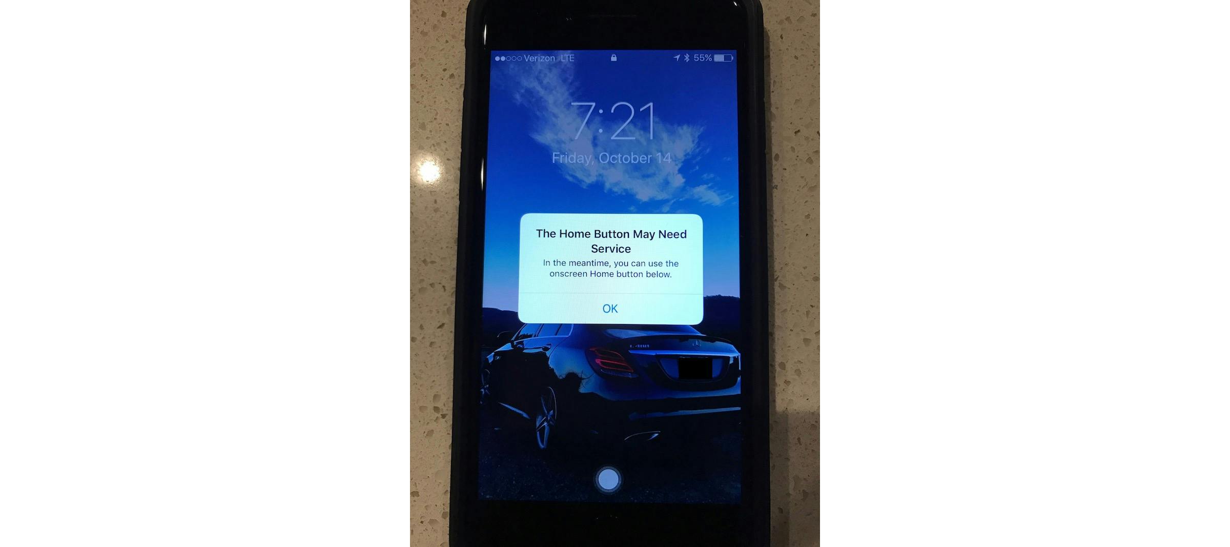 Gebruiker iwayne van het MacRumors-forum had een probleem met zijn iPhone 7 en na het herstarten kreeg hij de melding dat zijn thuisknop defect is. Daarbij verscheen wel een virtuele thuisknop onder in beeld, zodat de iPhone nog bruikbaar blijft. Bij problemen kun je nu in ieder geval nog bij je data en, misschien belangrijker, Apple bellen voor een reparatie-afspraak. Lees ook: Bepaal zelf hoe de homeknop op de iPhone 7 reageert