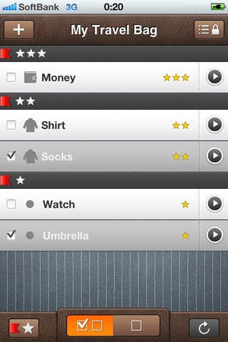 De app maakt simpelweg een lijstje van alle items die jij invoert. Via het hoofdmenu kan je producten toevoegen door deze een naam te geven en een icoon toe te wijzen. Ieder icoon staat voor een categorie zoals kleding, documenten of eten. Daarnaast kan je voor ieder item ook de mate van belangrijk aangeven door het toekennen van sterren. Moet je bijvoorbeeld echt niet vergeten je sokken mee te nemen, geef deze dan drie sterren. Als je de volledige lijst eenmaal hebt gemaakt, en je bent klaar om in te pakken, kan je items aanvinken die al in je koffer liggen. Op deze manier is het overzichtelijk wat je nog moet voorbereiden. Onderaan het scherm kan je aanvinken dat je alleen de niet-ingepakte items wil laten weergeven. Daarnaast kan je items sorteren per categorie, verwijderen of de gehele lijst verwijderen.