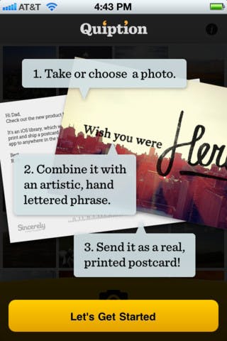 De naam van deze app wijst erop dat Quiption geënt is op het versturen van postkaarten. De online services tot delen beperken zich dan ook alleen tot Twitter en Dropbox. De kaart kan over de hele wereld per post worden verstuurd tegen een klein bedrag.