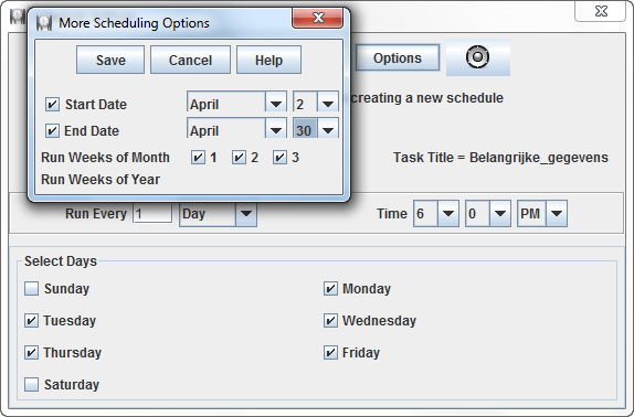 Een back-up starten is eenvoudig. Selecteer de juiste taak en klik op Run. Via Schedule koppelt u een tijdschema aan een back-up. Zo stelt u bijvoorbeeld in dat het programma op iedere werkdag om 18:00 uur automatisch een kopie wegschrijft. U kunt ook de gewenste periode selecteren. Dat is onder andere handig als u tijdelijk een notebook te leen hebt. Verder ontvangt u van afgeronde back-ups optioneel e-mailnotificaties. JaBack is prima freeware om back-uptaken aan toe te vertrouwen. Houd er wel rekening mee dat het een vrij gecompliceerd programma betreft. Om die reden is het vooral geschikt voor ervaren pc-gebruikers.