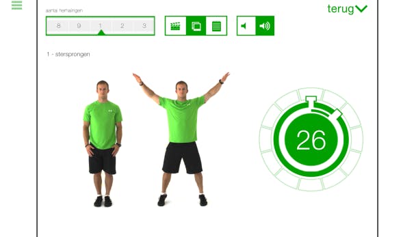 Bovendien zit de app ontzettend goed in elkaar. Elke oefening wordt netjes uitgelegd met foto's of filmpjes, je kunt je resultaten in een grafiekje gieten en herinneringen instellen zodat je je training niet vergeet. Om je te blijven motiveren zijn er zelfs badges die je kunt verdienen wanneer je een bepaald doel bereikt. Zie je het groots? Er is ondersteuning voor AirPlay zodat je de oefeningen bijvoorbeeld op je computer- of tv-scherm kunt tonen met Apple TV.