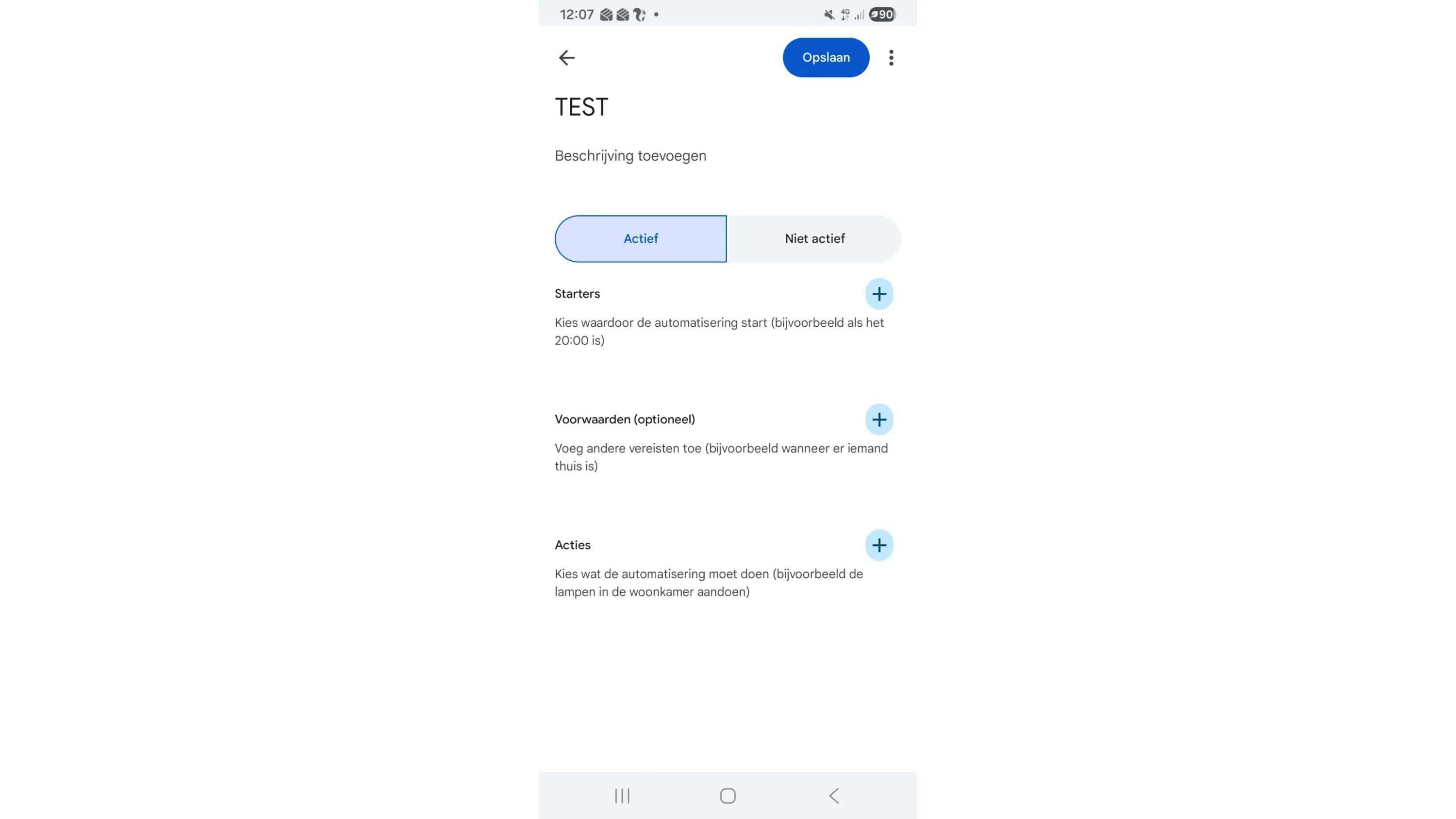 Nu je weet hoe je apparaten direct bedient, laten we je zien dat je ook automatiseringen of routines kunt instellen, zodat combinaties van acties met één tik of automatisch worden uitgevoerd. Om dat voor elkaar te krijgen in de Google Home-app tik je onderaan op de knop Automatisering en kun je kiezen uit een aantal voorgestelde routines, zoals wat er gebeurt als je van huis weggaat, of juist aankomt. Het nadeel hiervan is dat je wel de locatie-instellingen op je telefoon moet aanzetten en je huisadres in Google Home moet instellen, maar we kunnen goed voorstellen dat je daar niet op zit te wachten, privacytechnisch gezien dan. Als je een nieuwe routine wilt maken, tik je rechtsboven op de knop Nieuw > Automatisering. Geef de automatisering eerst een naam, zodat deze alvast kan worden opgeslagen nog voordat je iets instelt. Een routine bestaat altijd uit drie delen: een starter, een voorwaarde (die is optioneel) en een actie. Een starter kun je het beste zien als een gebeurtenis, bijvoorbeeld: het is 20:00, er wordt een beweging gedetecteerd, of de temperatuur van de slimme thermostaat is lager dan 16 graden. Een starter kan ook een spraakopdracht zijn. Stel dat je een 'Alles uit'-routine wilt: je geeft de routine een naam, kiest als trigger bijvoorbeeld het spraakcommando "Ik ga weg" en voegt als acties toe dat alle lampen uit moeten, de thermostaat naar 17 graden gaat en de tv wordt uitgezet.