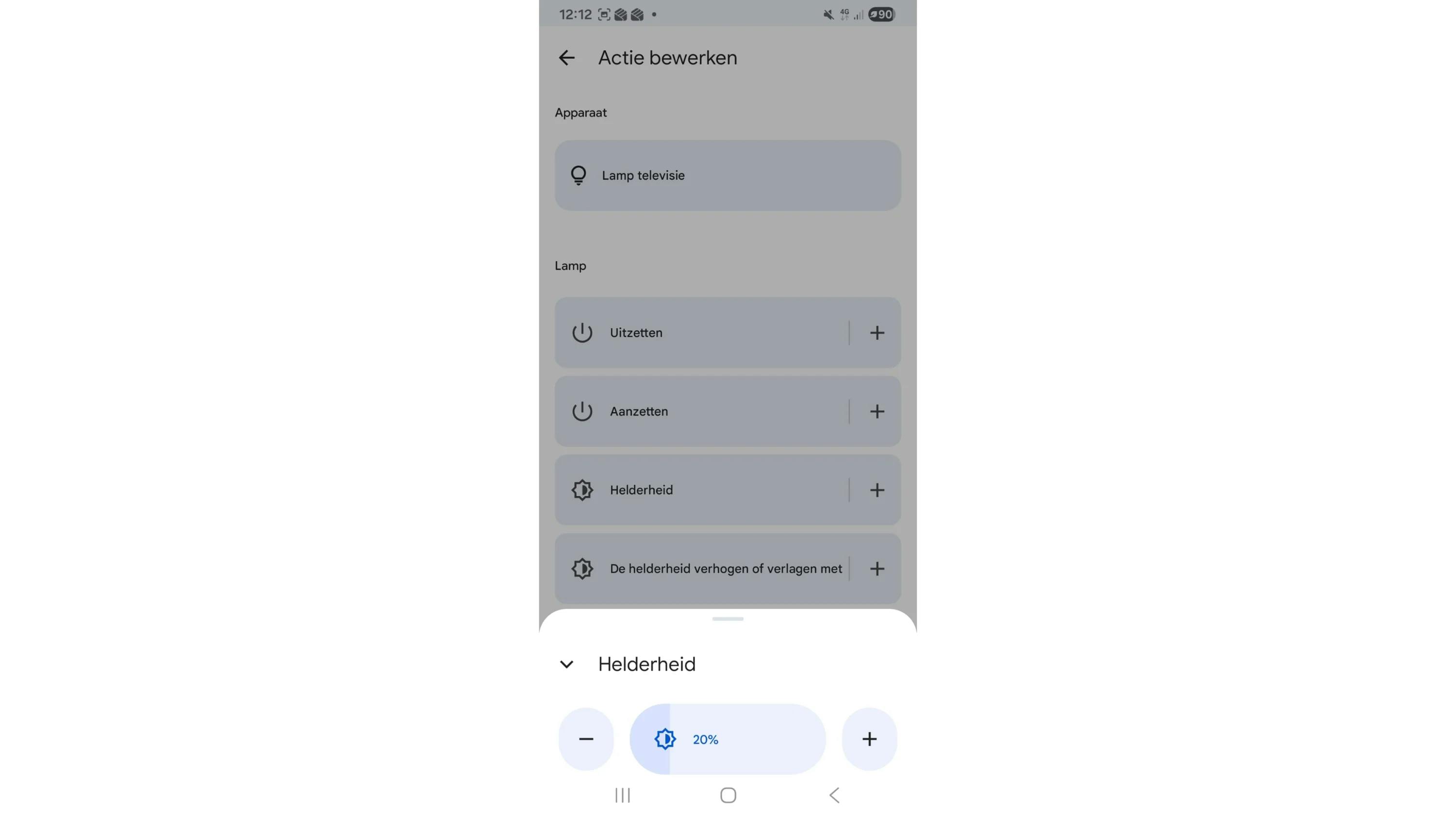 Voor een filmavond-scenario maak je een automatisering die handmatig start of op een spraakzin als "Filmavond": je selecteert dan bij Actie bewerken de lampen in de woonkamer en zet de helderheid naar bijvoorbeeld 20 procent, je zet eventueel gekleurde lampen op warm wit en schakelt een slimme stekker van de sfeerverlichting in. Heb je gordijnen met een slimme motor, dan voeg je toe dat die naar 100 procent dichtgaan. Tot slot wijs je de tv- of Chromecast-tegel toe om een bepaalde app te starten of in elk geval de tv in te schakelen. Omdat deze routines gebruikmaken van de apparaten en kamers die je eerder hebt ingericht, zie je direct hoe belangrijk een goede basisconfiguratie is.