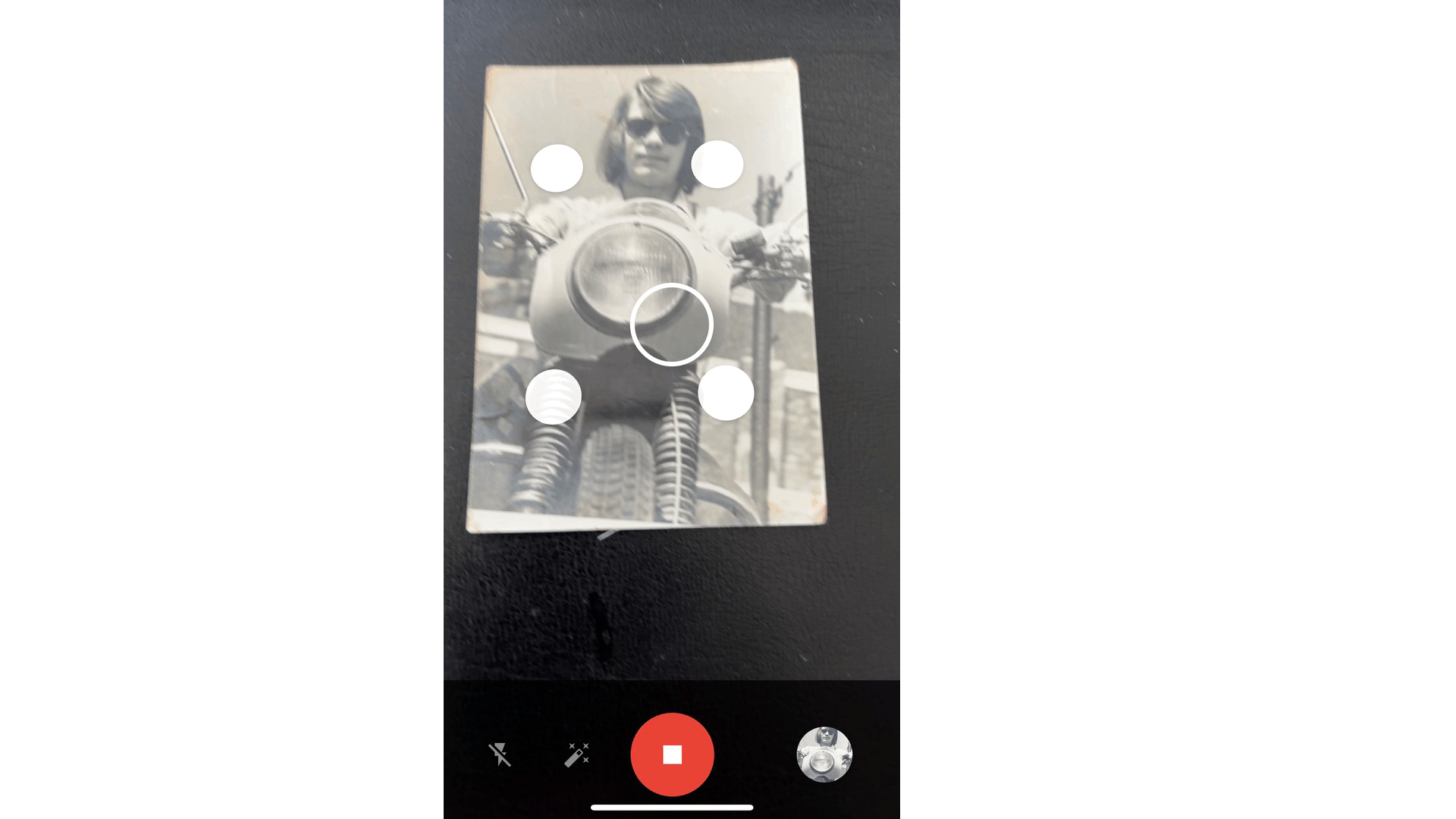 Voor elke foto werkt de app met verschillende opnamen. De app voegt deze beelden samen tot één geoptimaliseerde scan. Zodra je op de sluiterknop tikt, verschijnen vier witte stippen; één in elke hoek van de afbeelding. Je beweegt je telefoon naar elke stip en houdt die stil tot de stip blauw kleurt. Dat kost iets meer tijd dan het maken van een gewone foto, maar het resultaat is aanzienlijk beter. Van het indrukken van de sluiter tot de uiteindelijke scan ben je zo’n 10 tot 20 seconden per foto kwijt.