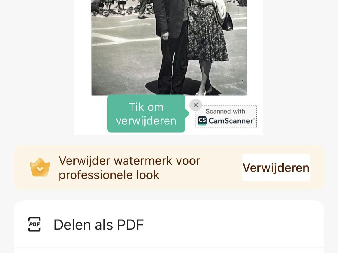 Met het Premium-abonnement krijg je toegang tot extra functies zoals tekstherkenning in scans, het exporteren van pdf’s naar Word, Excel of jpg, en het gebruik van een zogenaamd tovergummetje. Met dat gummetje verwijder je eenvoudig storende objecten in een foto. Je tikt met je vinger op het object, er verschijnt een paarse overlay, en een seconde later is het verdwenen. Tijdens de proefperiode van een week kun je de Premium-functies alvast uitproberen.