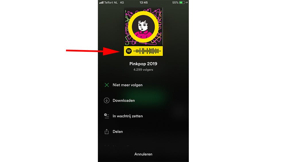Je kunt natuurlijk een afspeellijst met iemand delen door een link via WhatsApp, Facebook Messenger of e-mail door te sturen. Daarnaast is er nog een alternatieve deelmethode, namelijk het genereren van een unieke streepjescode. Zodra iemand je streepjescode met de mobiele camera scant, heeft diegene toegang tot dezelfde afspeellijst. Deze truc is vooral nuttig wanneer je samen met een vriend(in) in dezelfde ruimte bivakkeert en rechtstreeks muziek wilt uitwisselen.