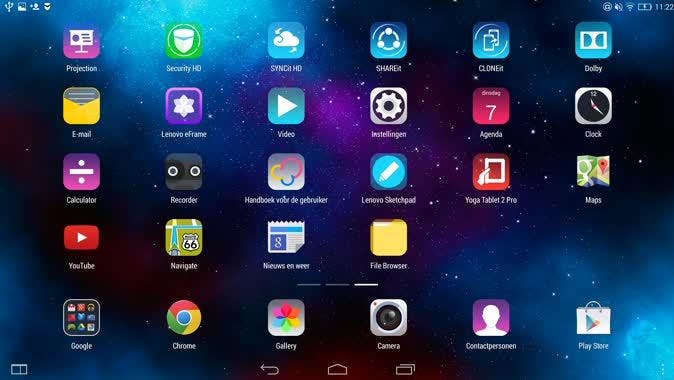 Lenovo's Android-interface is één van de ingewikkeldste versies van Android die ik ooit gebruikt heb. Het is bovenop Android 4.4 KitKat gebouwd - en de interface van de Yoga Tablet 2 Pro is zo ontworpen dat deze lijkt op die van de iPad, inclusief de vervelende mappen en apps die je niet van het thuisscherm kunt verwijderen.