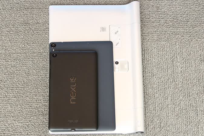 Een Nexus 7, met daaronder een Nexus 9 met daaronder de Yoga Tablet 2 Pro.