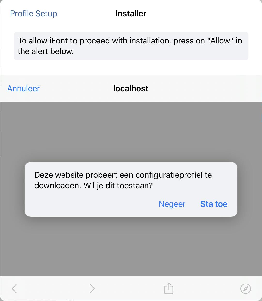 Tik achter de preview daarvan op Install. Tik vervolgens als antwoord op de vraag Deze website probeert een configuratieprofiel te downloaden. Wil je dit toestaan? op Sta toe.