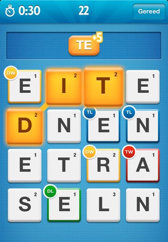 Na het succes van MAG Interactive met de app Wordfeud Helper, staat hun game Rumble nu ook hoog in de Nederlandse charts. Deze nieuwe app laat ons veel denken aan het bekende Boggle-spel. Net zoals bij Boggle is het de bedoeling zoveel mogelijk woorden te vormen met 16 willekeurige letters. Je neemt het hiervoor op tegen een willekeurige tegenstander, een zelfgekozen tegenstander die in je vriendenlijst staat of een Facebook vriend. Een spel bestaat uit drie rondes van 2 minuten. Wie de hoogste totaalscore haalt tijdens deze drie rondes, wint het spel. Bij sommige letters kan je echter extra punten verdienen. Deze letters herken je aan de logo's DL (dubbele letterpunten), TL (drievoudige letterpunten), DW (dubbele punten voor het woord) en TW (drievoudige punten voor het woord). Via het premium-pakket - waarvoor je 2,39 euro neertelt - kan je naast het verwijderen van de kleine reclameboodschappen, ook een oefenmodus en de keuze uit profielafbeeldingen vrijkopen.