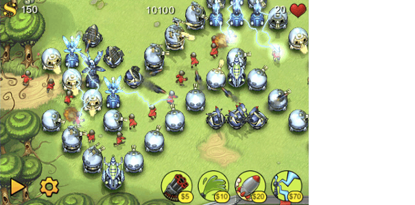 Fieldrunners is een game waarin je een toren moet verdedigen. De toren wordt aangevallen door de vijand, waarna jij de opdracht krijgt deze te verdedigen. Dit doe je door simpelweg te voorkomen dat de vijand de toren kan bereiken en vernietigen. Om de toren te bereiken moet de vijand door een opening in het bos over een open veld rennen. Aan het begin van het spel krijg je een hoeveelheid geld tot je beschikking. Hiermee kun je verdedigingseenheden bouwen zoals gatling geweren, raketwerpers, kanonnen en tesla kanonnen, die stroom afvuren. Door vijanden te verslaan kun je extra geld indienen, waarmee je de beveiliging van je toren kunt upgraden. Daarnaast kun je nieuwe torens aanschaffen, waardoor je meer schade kunt doen. Fieldrunners kun je voor 2,39 euro in de App Store aanschaffen.